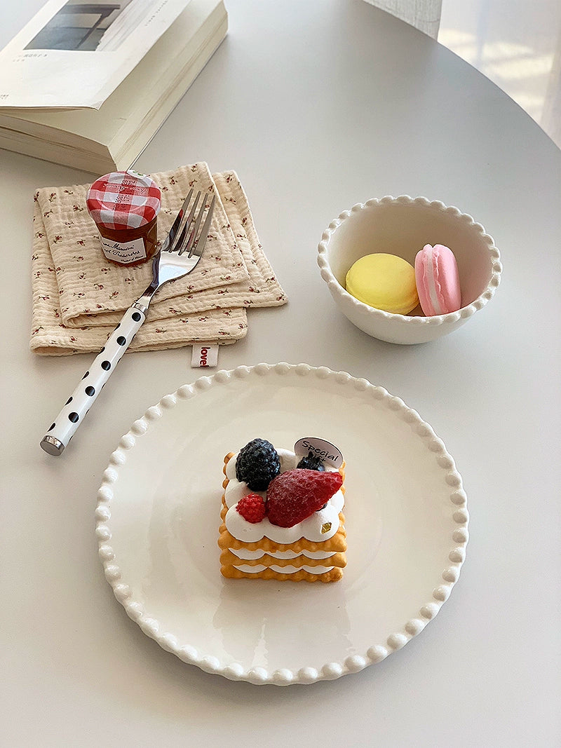 This plate is not just for desserts; its versatility allows it to be used for any dining occasion. Serve delicious entrees, small delicacies, or delightful sweets with confidence and style. And if you’re hosting a tea party, pair this dessert plate with the accompanying 4.5-inch or 7-inch beaded bowls for a cohesive and sophisticated look. Imagine offering guests a selection of sweet treats or fruit, exquisitely displayed on these lovely pieces—they’re sure to impress!