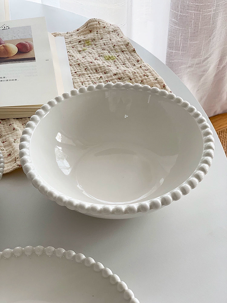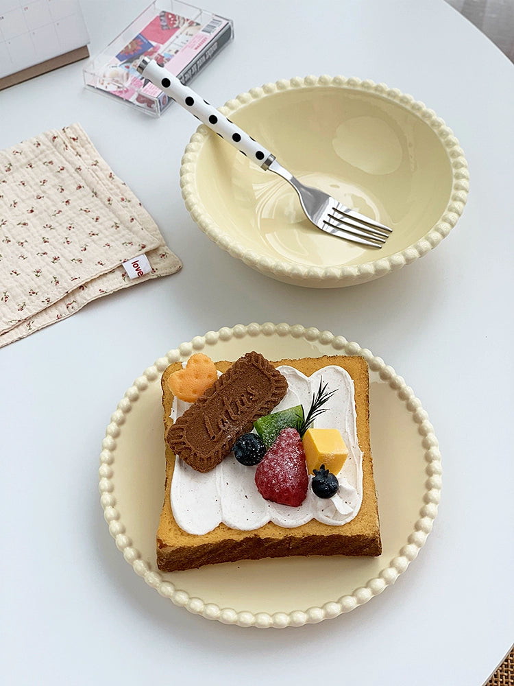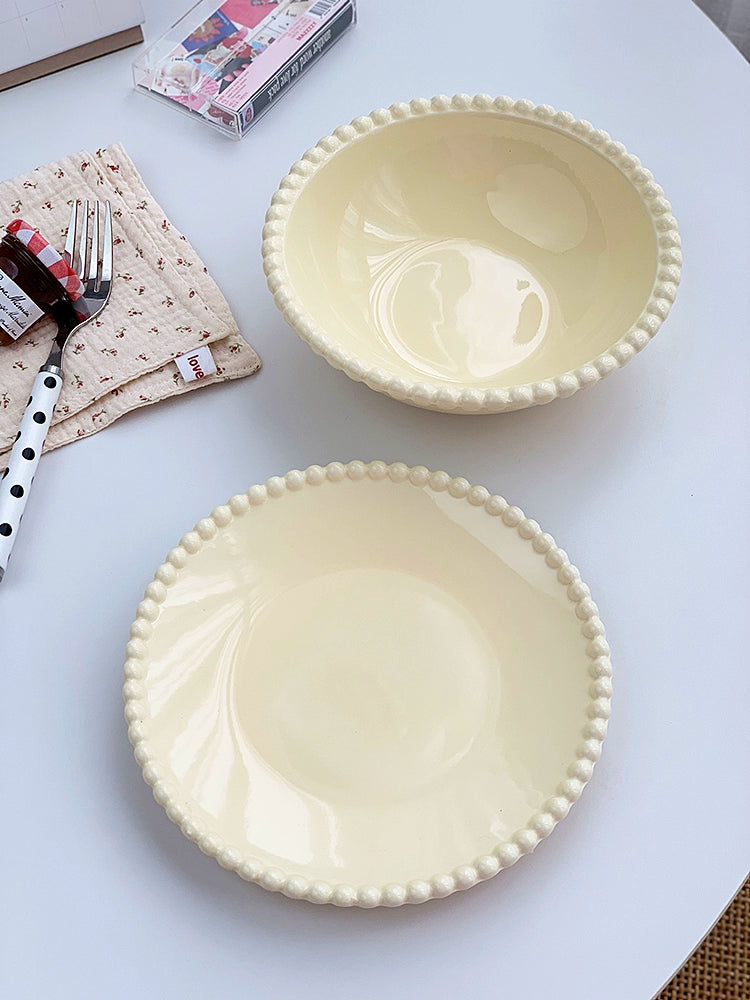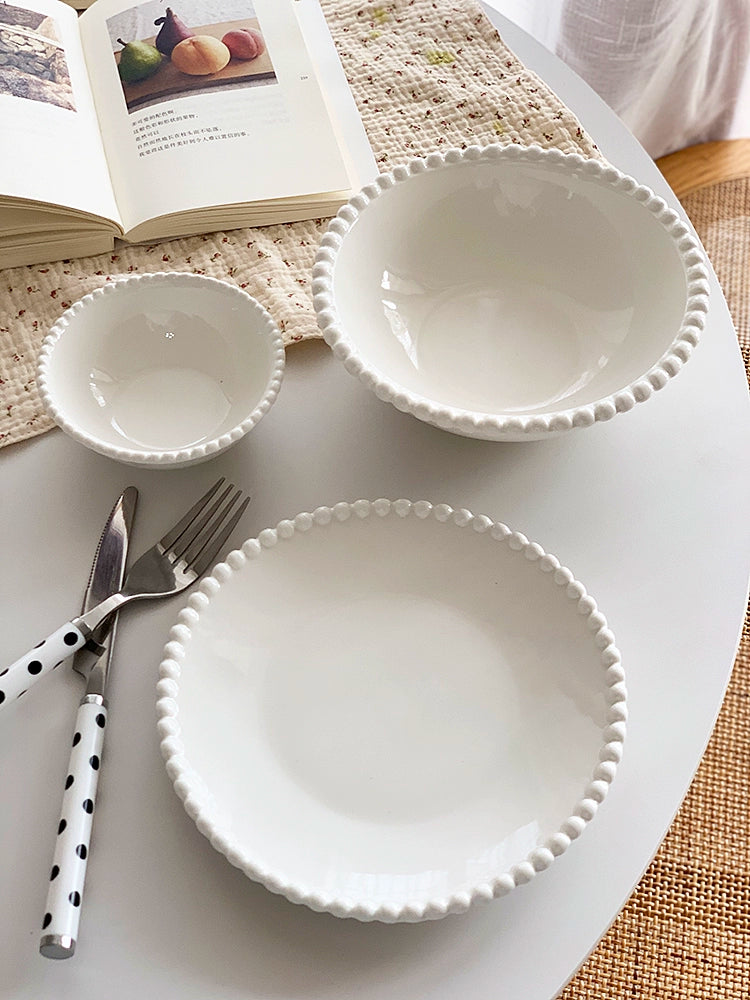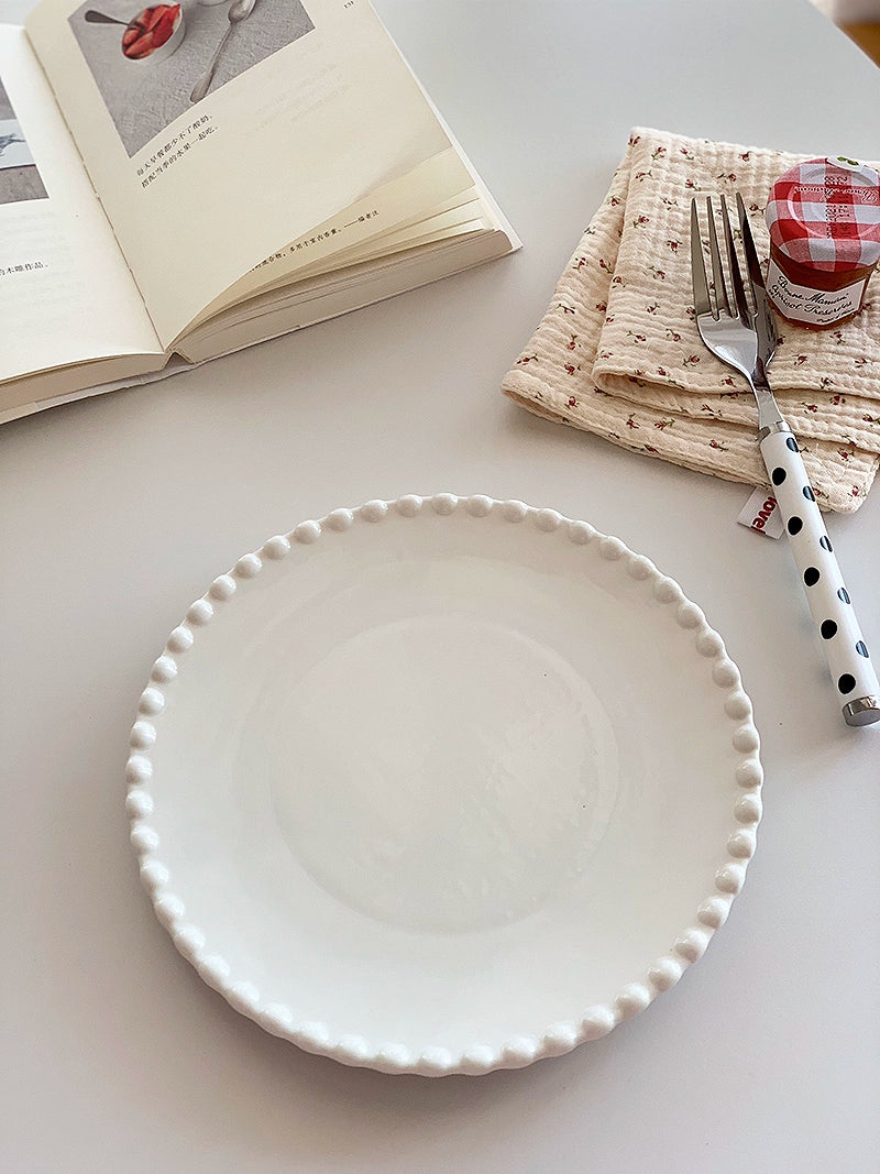 The YASUKI Eliana Elegant Pearl White Ceramic Dessert Plate is part of a stunning collection that includes various sizes and colors to suit every occasion. From the classic 8-inch beaded edge plate to the charming cream yellow options, mix and match to create a personalized dining experience that reflects your unique taste.